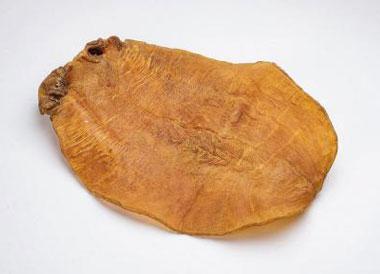一般养殖的花胶(同上,赤嘴和白莲是多的)在同个品种下,纹路会比野生的少一些,比较光滑,而且肉相对较薄,颜色相对较透,肉质也不如野生的好,还有另外一个更加直观的判断就是,养殖的花胶一般同一批个头都长的差不多大小,而且也的漂亮,因为养殖的赤嘴每天销售的数量是一定的(尤其针对那些一个几十克左右的花胶,不可能把全部养的赤嘴鳘鱼全部杀光,然后取下鱼鳔吧?那那些鱼肉怎么办),所以人工剖晒的比是较讲究;而野生的花胶同批货个头大小差异都比较大,而且剖的手法也不一哦.