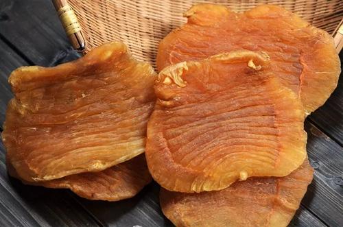一般养殖的花胶(同上,赤嘴和白莲是多的)在同个品种下,纹路会比野生的少一些,比较光滑,而且肉相对较薄,颜色相对较透,肉质也不如野生的好,还有另外一个更加直观的判断就是,养殖的花胶一般同一批个头都长的差不多大小,而且也的漂亮,因为养殖的赤嘴每天销售的数量是一定的(尤其针对那些一个几十克左右的花胶,不可能把全部养的赤嘴鳘鱼全部杀光,然后取下鱼鳔吧?那那些鱼肉怎么办),所以人工剖晒的比是较讲究;而野生的花胶同批货个头大小差异都比较大,而且剖的手法也不一哦.