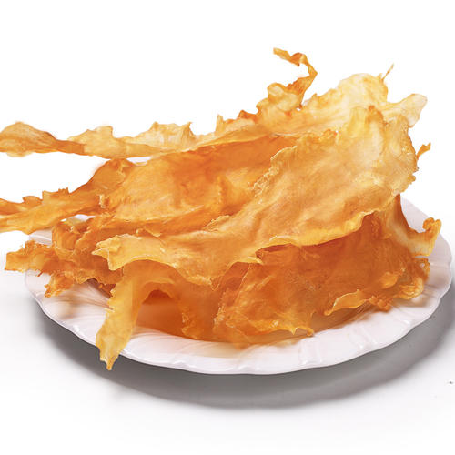 (2)看鱼胶的厚度:肉质厚,黄金剔透宛如玉.鱼鳔是鱼用来呼吸的器官,越有活力的鱼它的运动强度就越大,根据用进废退的理论,活动多了,鱼鳔就越厚越大,越健康.反之,肉质薄,色泽差.